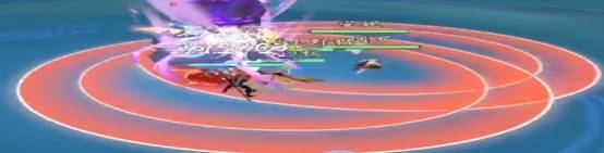注:一般释放的时候,目标为1-4个不等。需要注意的是,技能红圈为双红圈,新手玩家千万不要脚下一出现红圈就立即位移,一定要等待两个红圈重叠的时候再位移,如果未重叠的时候就位移,红圈会一直跟随,等两个红圈重叠的时候,红圈不再继续跟随。