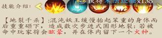 注:此技能为被动技,简单直白来说,就是BOSS受到的伤害越多,自身会积攒一个怒气能量,满格后会释放一次全屏攻击,BOSS怒气能量格并不显示,全屏攻击也不完全是全屏,伤害较一般,且释放时候很少。BOSS施法动作有两种,一种就是张开大嘴狂吼。一种就是突然飞起然后落下砸地。