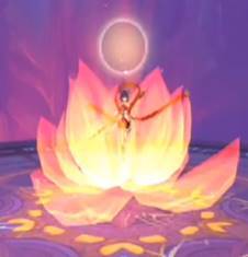 注:高伤AOE伤害,自身旋转释放一束连天火圈,状态结束会有个插地结尾技能,此时,所有周围玩家会被击退。可在火圈即将结束时拉开距离。火圈释放途中,可寻找携带莲花之人,站在一起,降低所受伤害。